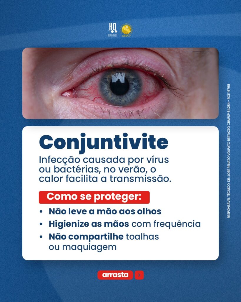 A conjuntivite é uma inflamação da conjuntiva, uma membrana que recobre as pálpebras e os olhos. Quando os olhos estão vermelhos, invariavelmente é sinal de
