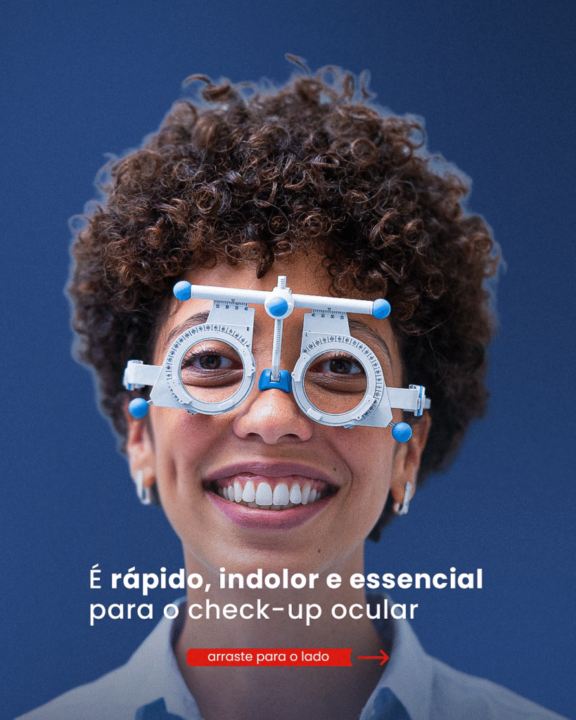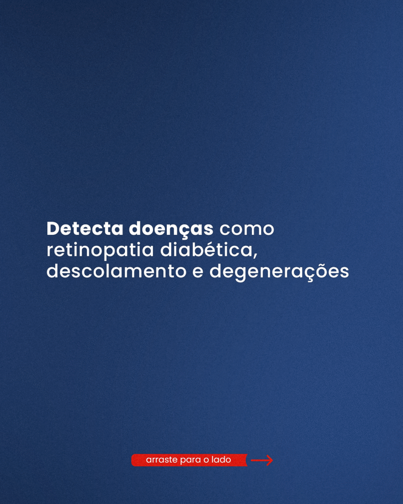 Com ele, o oftalmologista avalia toda a região interna do olho, observando o nervo óptico, os vasos sanguíneos e a retina em detalhes.