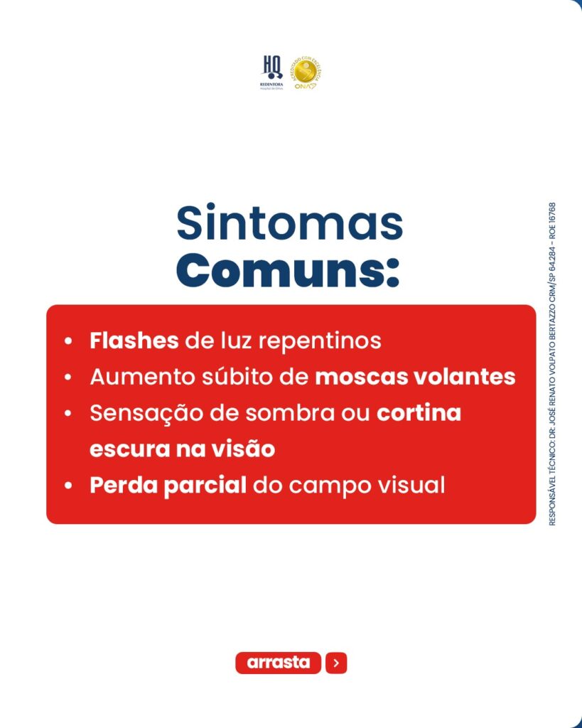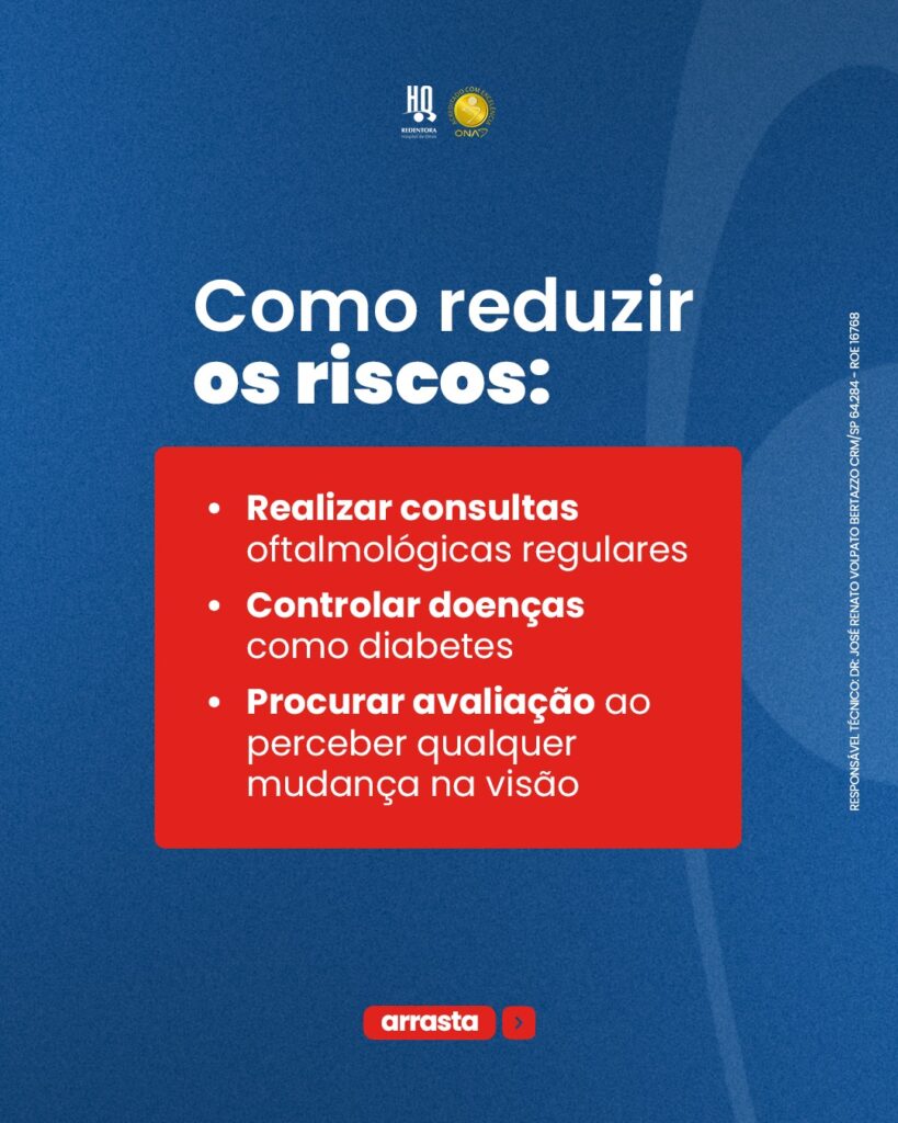 Alterações repentinas na visão nunca devem ser ignoradas. Quanto antes o diagnóstico é feito, maiores são as chances de preservar a qualidade visual. O acompanhamento regular é ainda mais importante para quem tem miopia alta, diabetes ou já sofreu algum trauma ocular.