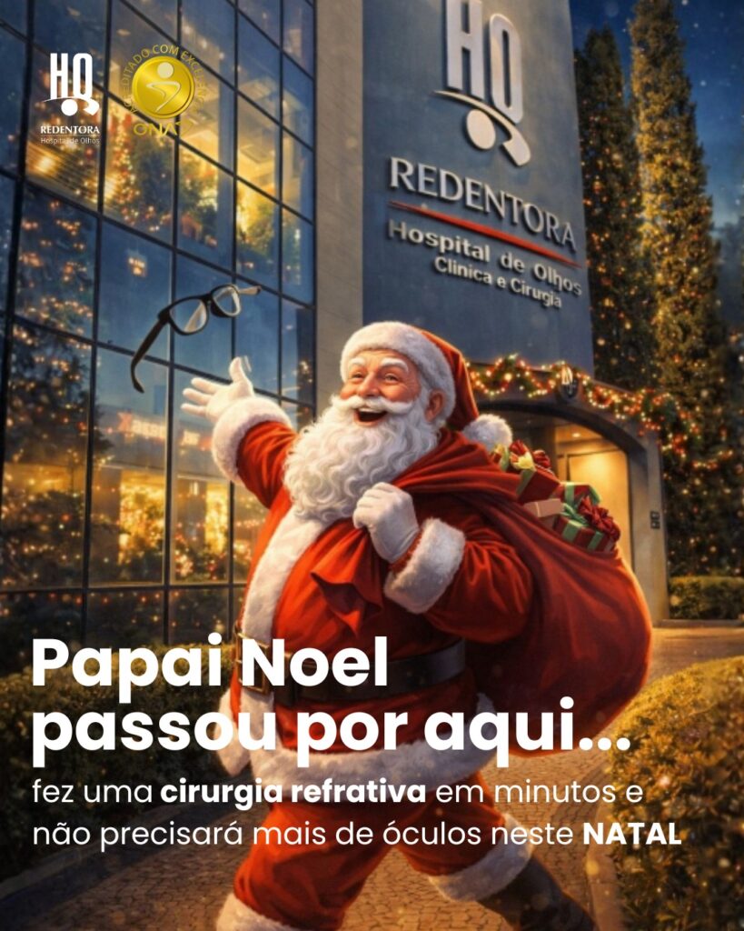 Pouco antes do Natal, Papai Noel passou rapidinho aqui no HO Redentora, fez uma cirurgia refrativa em poucos minutos e já está enxergando tudo com muito mais clareza.