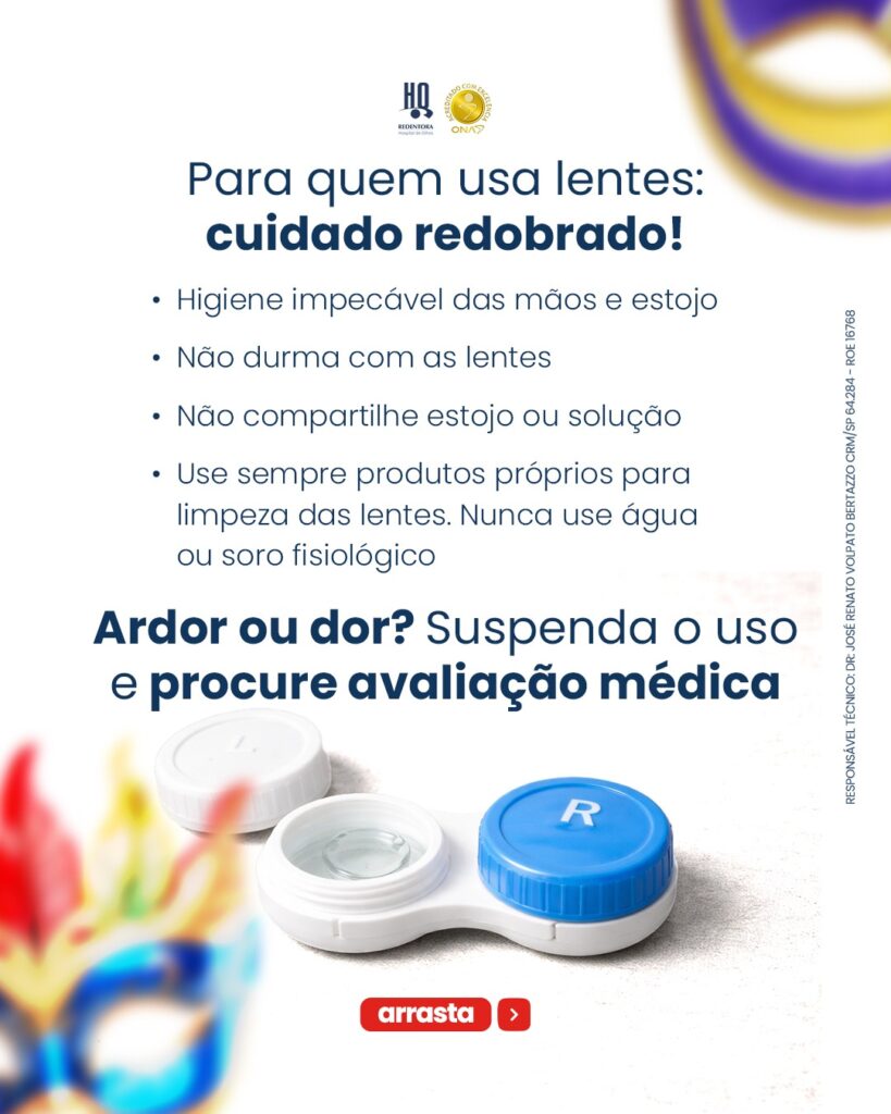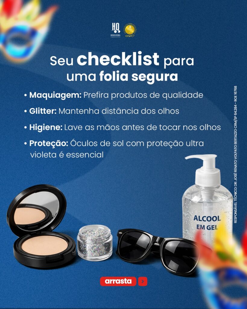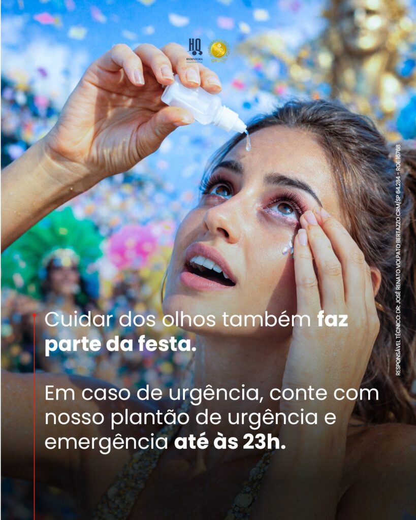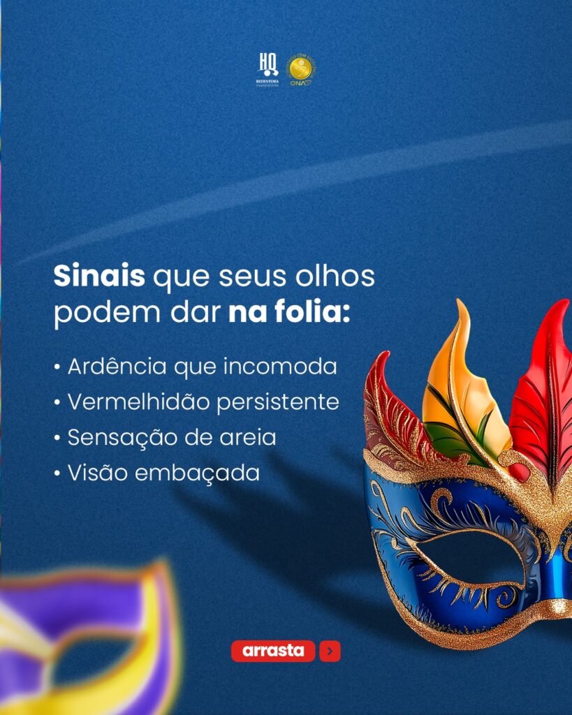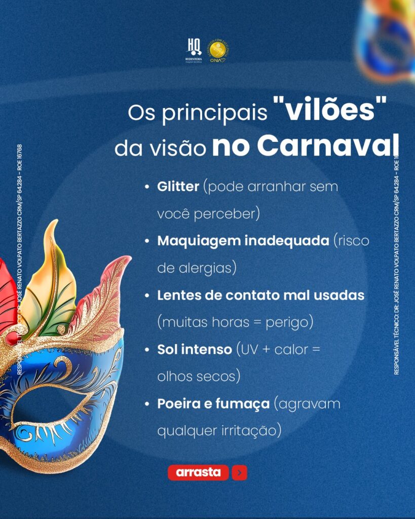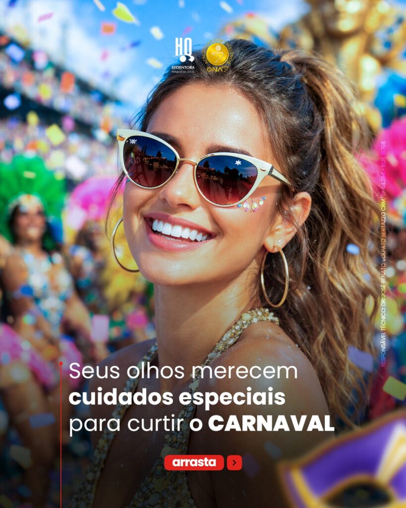 O Carnaval é tempo de alegria, mas também pede atenção à saúde dos olhos.
