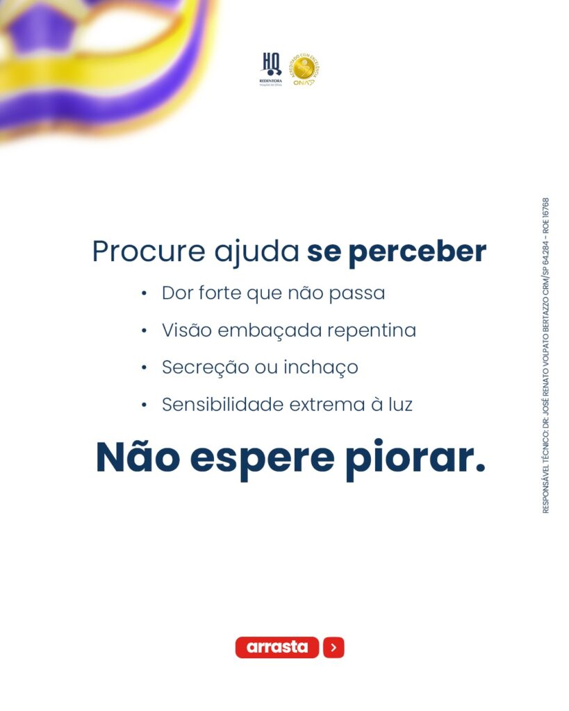 E, se surgir qualquer desconforto persistente, a avaliação oftalmológica é essencial.